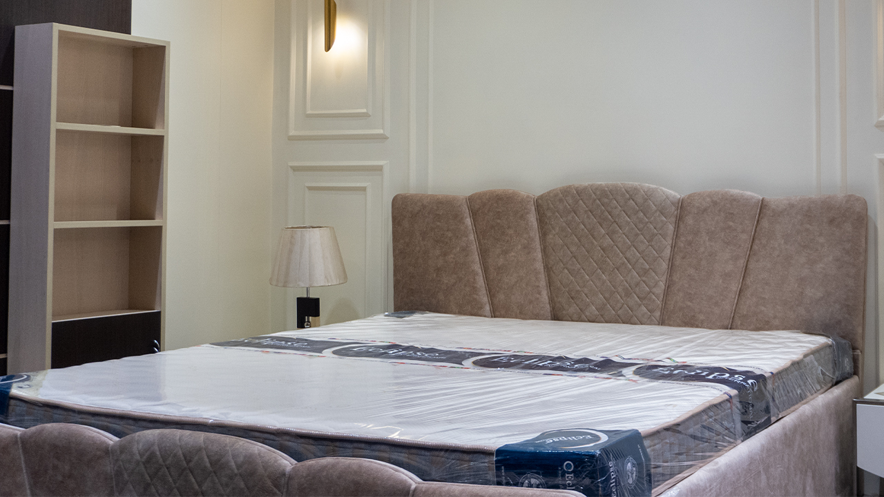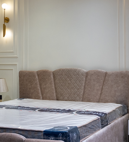 "Indulge in the Ultimate Sleeping Experience. Escape to a world of comfort and tranquility with our stunning bedroom setup, featuring a majestic bed that's sure to become your new sanctuary. The plush headboard and crisp white bedding invite you to sink in and relax, while the warm glow of the wall lamps creates a cozy ambiance that's perfect for unwinding after a long day. Imagine yourself drifting off to sleep surrounded by elegant furnishings and soothing decor, feeling pampered and rejuvenated with every passing moment. Whether you're looking to upgrade your current bedroom or design a new space, our beautifully designed bed is the perfect centerpiece for your dream retreat."