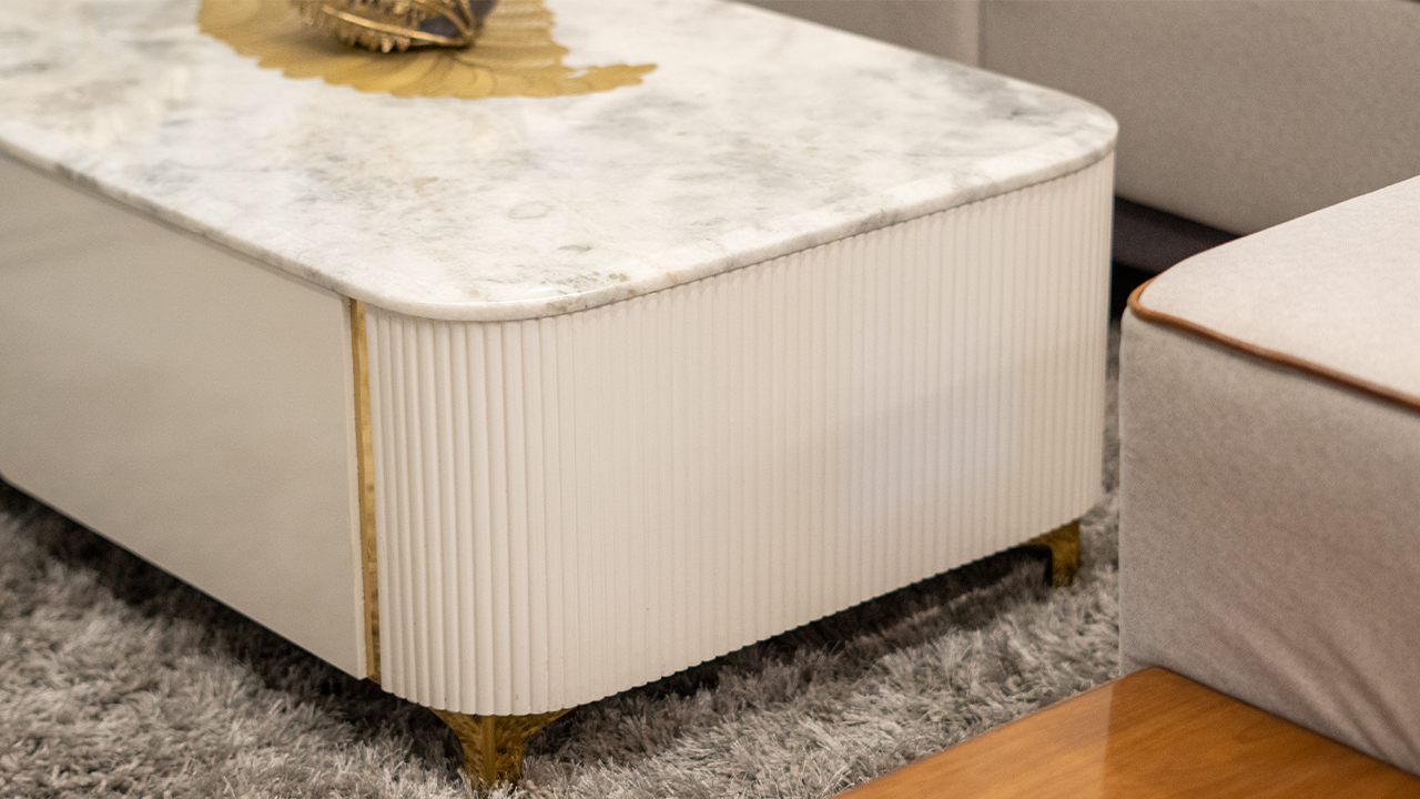 "Add a touch of elegance and sophistication to your living room with our stunning Marble Coffee Table with Storage. This beautifully crafted piece of furniture combines style, functionality, and practicality, making it the perfect addition to any home. The table's sleek, modern design features a beautiful marble top, complete with a subtle veining pattern that adds a touch of luxury to any room. The sturdy base is made from high-quality materials, ensuring stability and durability. The table also features a convenient storage compartment, perfect for stashing away remotes, magazines, and other living room essentials."