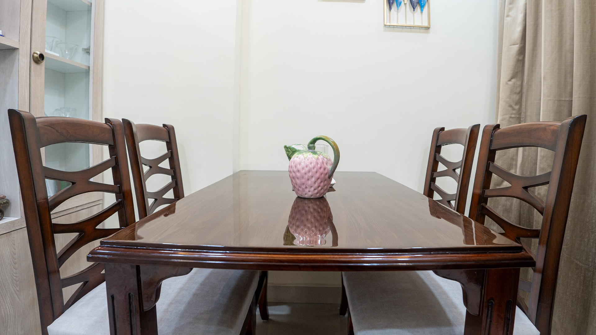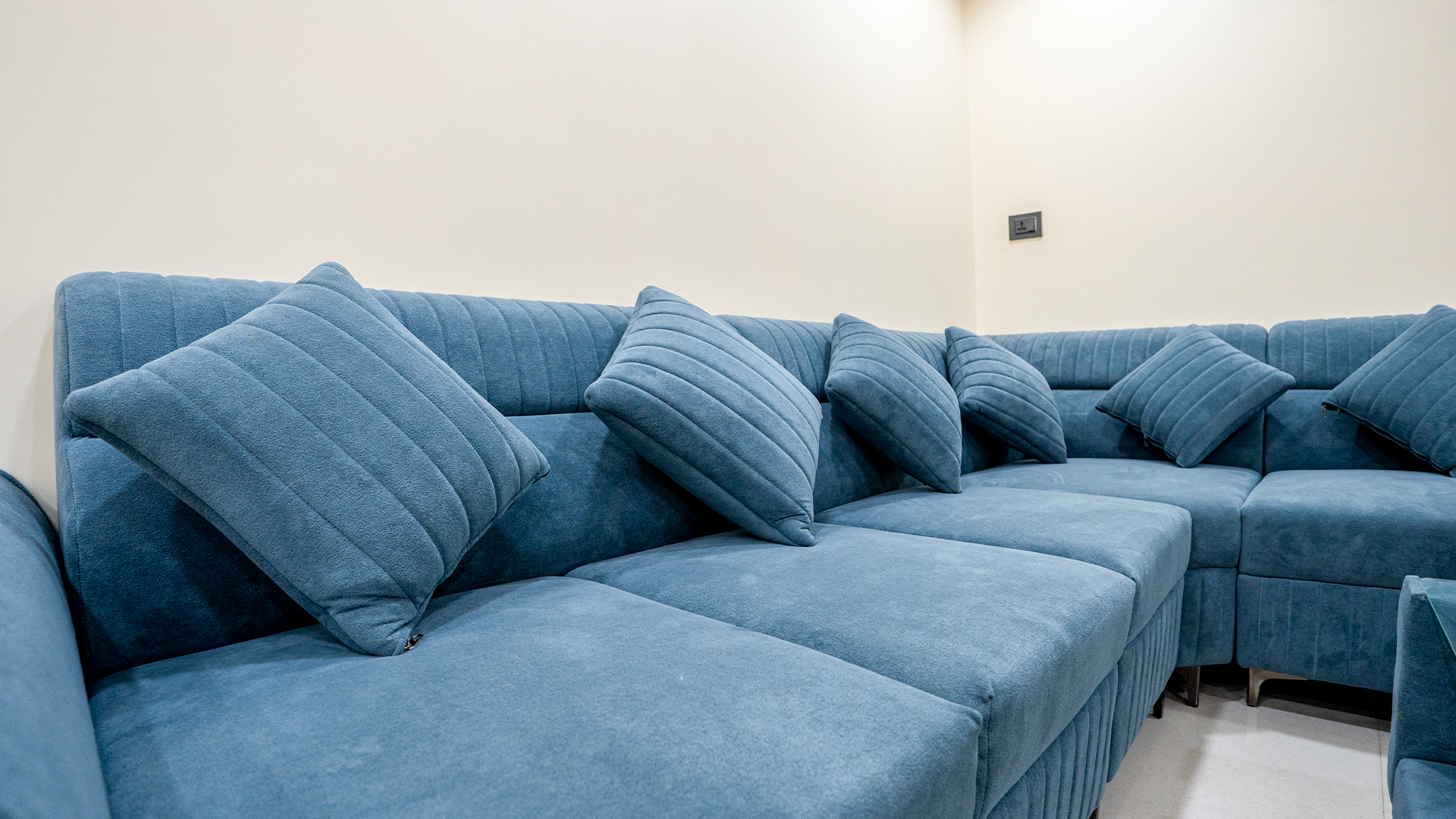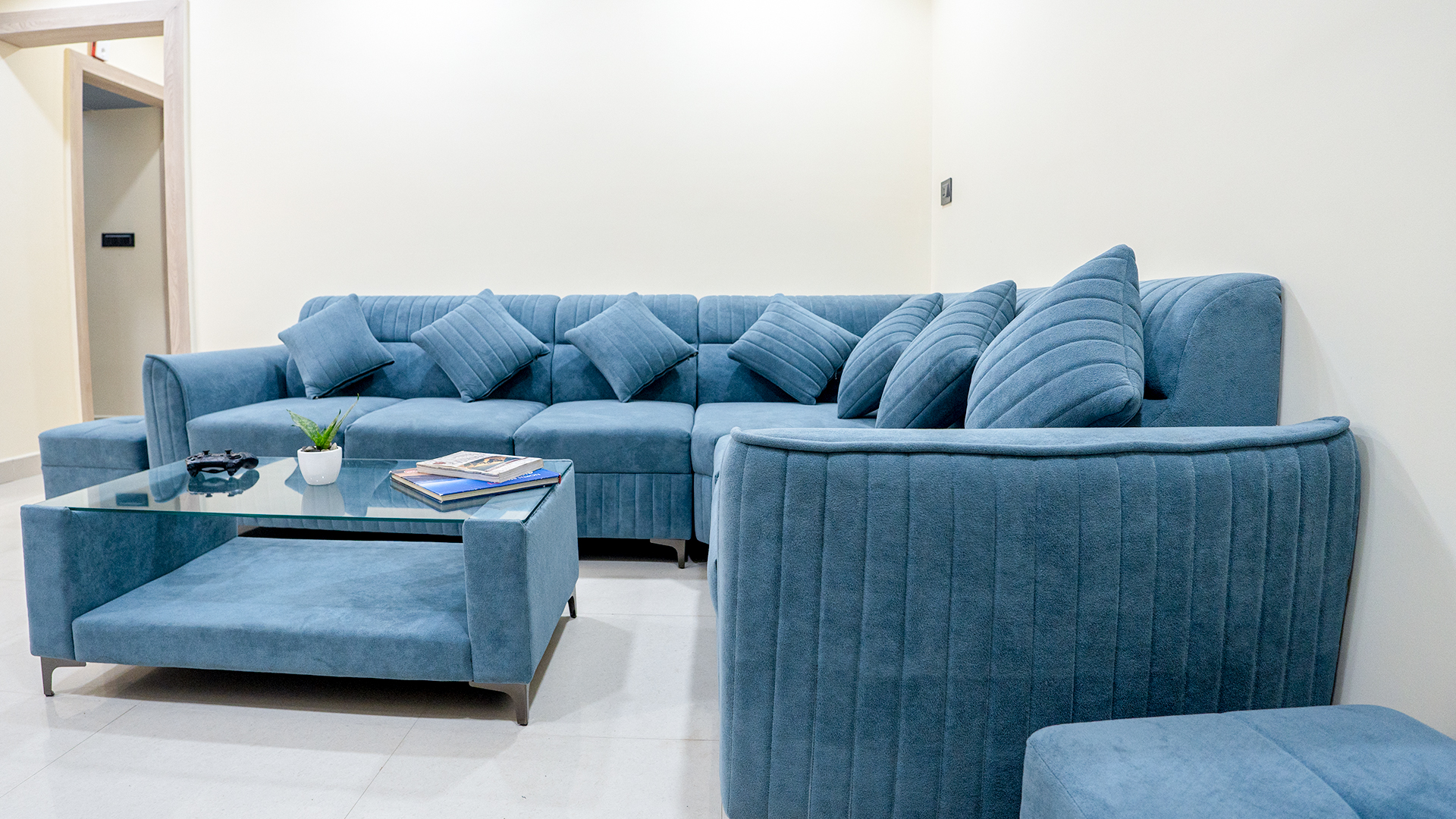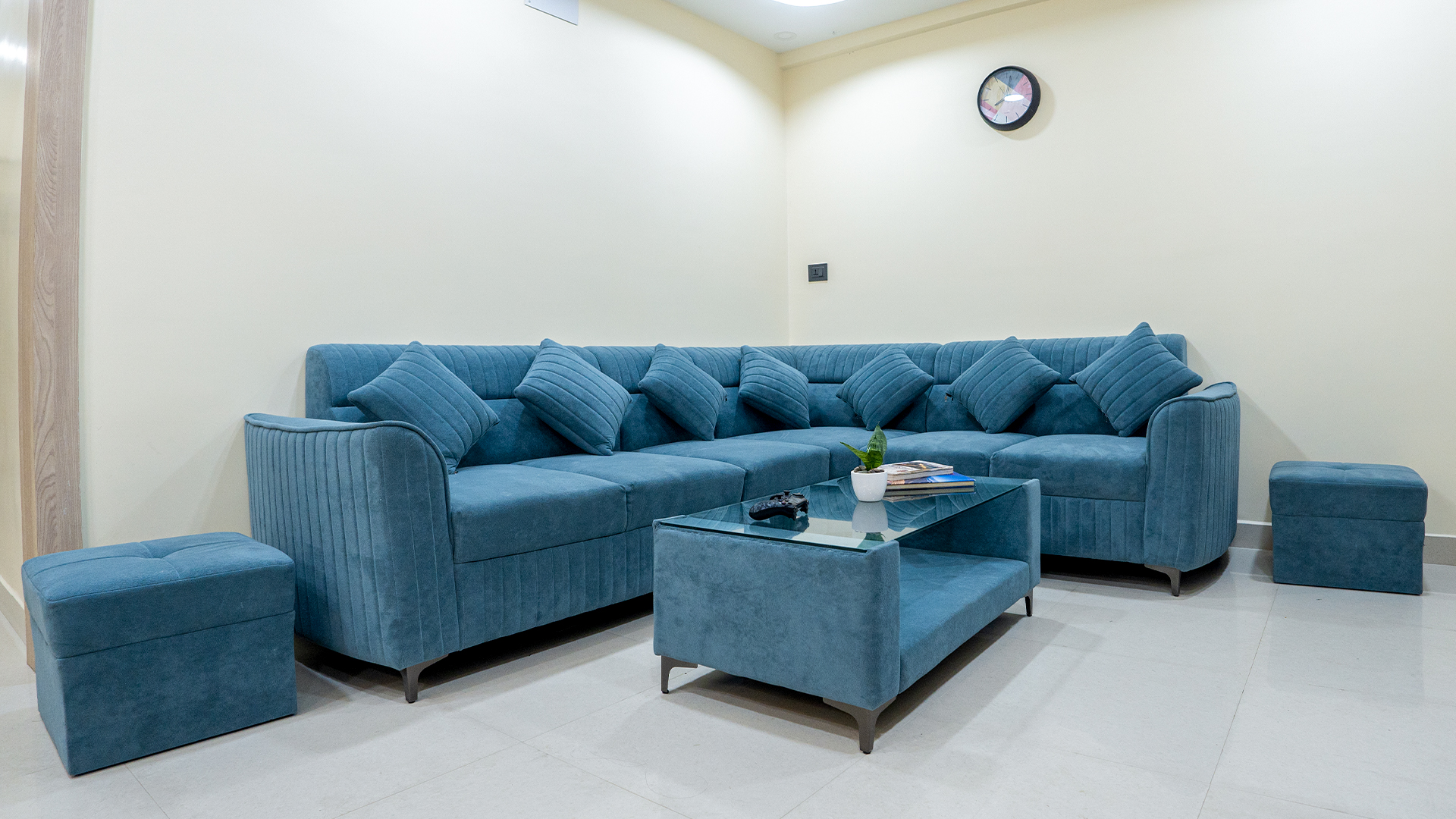 Meticulously balanced with the richness of smooth monotone backdrop, the living interior sings into the oasis of bold coloration and mixed textiles. A rapturing play of geometric patterns with up scaled carpet crisply defines the fluidity and expresses the vocabulary of open layout. The clean ceiling design with indirect light draws the gaze into the spaces, and gently quells with the pop of the fabrics over viewing the silent yet classic deluxe of the interiors.